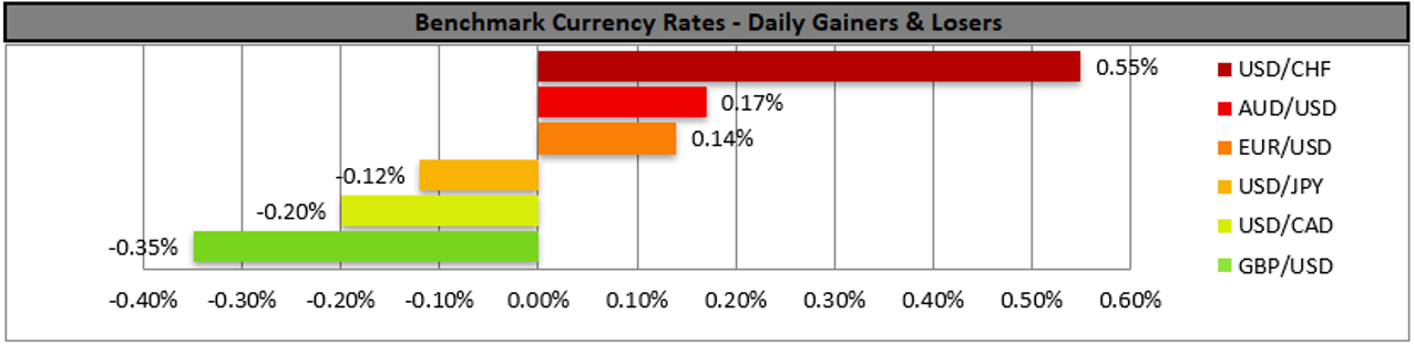 The USD tended to stabilise against its counterparts yesterday, in the aftermath of the Fed’s interest rate decision and we note that our worries for the economic outlook of the US tended to intensify especially. On the other hand, we highlight that the possibility of the US Government shutting down is looming over the markets and may provide some safe haven inflows for the USD. Furthermore, the greenback may be drawing support from rising US bond yields.