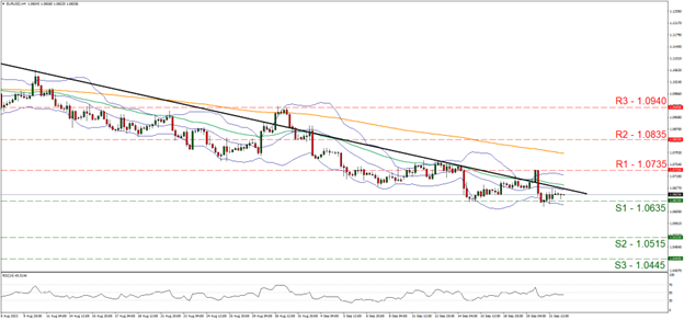 Across the pond, BoE decided to remain on hold, keeping rates at 5.25%, given the unexpected slowdown of the UK CPI rates for  August. The bank also expressed its expectations for inflation to come down significantly over the coming months and at the same time tended to stress the weaker economic outlook for the UK. Overall, the bank seems to have reached its terminal rate without explicitly having stated that and a number of financial analysts are highlighting such a scenario, which in turn may weigh on the pound somewhat.