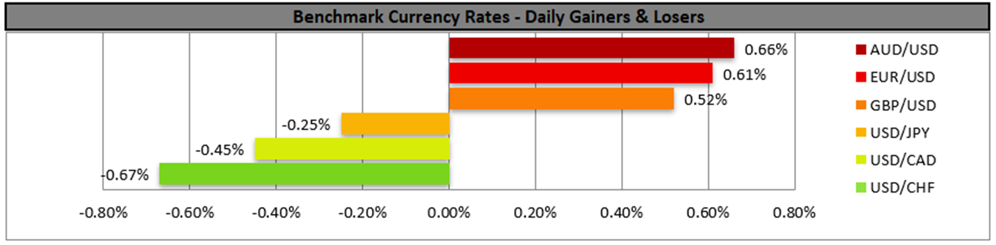 On a technical level, the USD edged lower against the JPY yesterday exercising additional pressure on the 146.30 (S1) support line. We tend to maintain our bias for the sideways motion to continue as the S1 held its ground. We also note that the RSI indicator is recovering from the depths of the reading 30, implying that the bearish sentiment in the market for the pair, tends to ease. Should the bears regain control over the pair, we may see the pair breaking the 146.30 (S1) support line and aim for the 144.45 (S2) support level. For a bullish outlook, we would require the pair to rise and break the upper boundary of its sideways motion, namely the 148.25 (R1) resistance line, thus opening the way for the 149.70 (R2) resistance level.