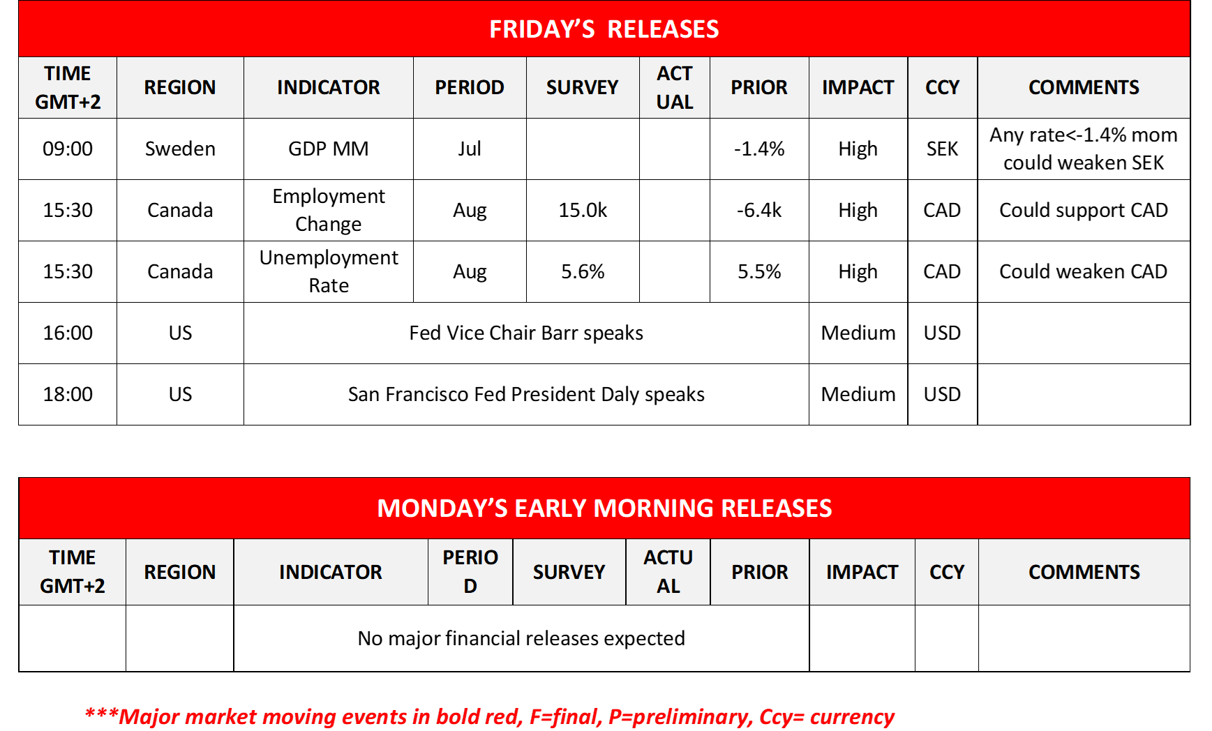We note in the European session, the release of Sweden’s GDP rates for July, and in the American session, Canada’s employment data are due out, while Fed Vice Chair Barr and San Francisco Fed President Daly are scheduled to speak.