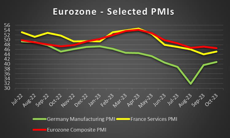 The USD retreated substantially across the board for the week, as the US CPI rates for October slowed down more than expected, indicative of the easing of inflationary pressures in the US economy and solidifying the market’s expectations for the Fed to abandon its rate-hiking path and remain on hold. It should be noted that according to Fed Fund Futures (FFF) the market now expects the Fed to remain on hold and proceed with a rate cut as early as May next year. Also, the release of October’s CPI rates overshadowed the statements made by Fed Chairman Powell last week in which the Fed Chairman hinted that more rate hikes would be possible if needed. We do not underestimate the possibility of some Fed policymakers continuing to lean on the hawkish side, given that the CPI rates are still substantially higher than the Fed’s target, yet we see the balance of power within the central bank as tilting towards a more cautious approach. We expect the release of the Fed’s last meeting minutes, to shed more light on the banks’ intentions. Should the document include a more hawkish tone we may see the greenback getting some support. On a macro level, our worries for the US economic outlook intensified somewhat from the data this week and intend to focus on the release of the preliminary S&P PMI figures of November.
