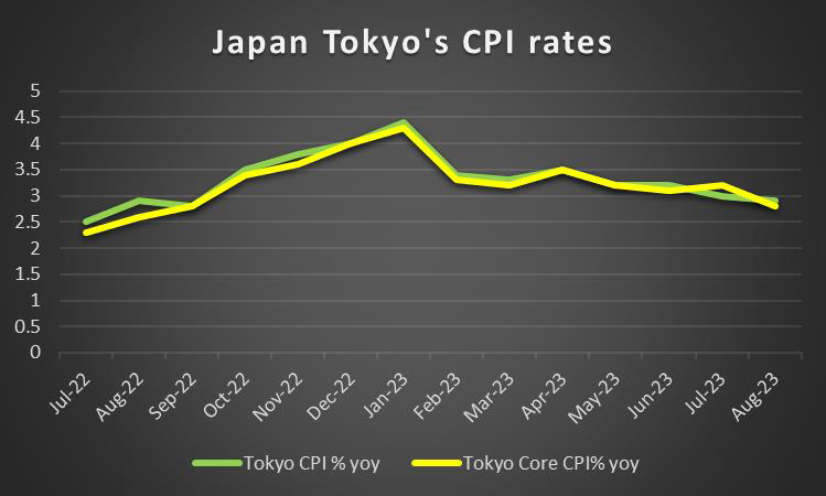 We have to note at this point that the Japanese Yen has reached very low levels against the USD and a market intervention by the Japanese government is possible. Japan’s Finance Minister Suzuki was reported saying by Reuters that he would “not rule out any options on currencies as the dollar broke above 148 yen to the dollar, warning against yen sell-offs that would hurt trade-reliant Japan”. Yet on a macroeconomic level, inflationary pressures in the Japanese economy do not seem to have slowed down substantially since February as Japan’s CPI rates for August tended to show.