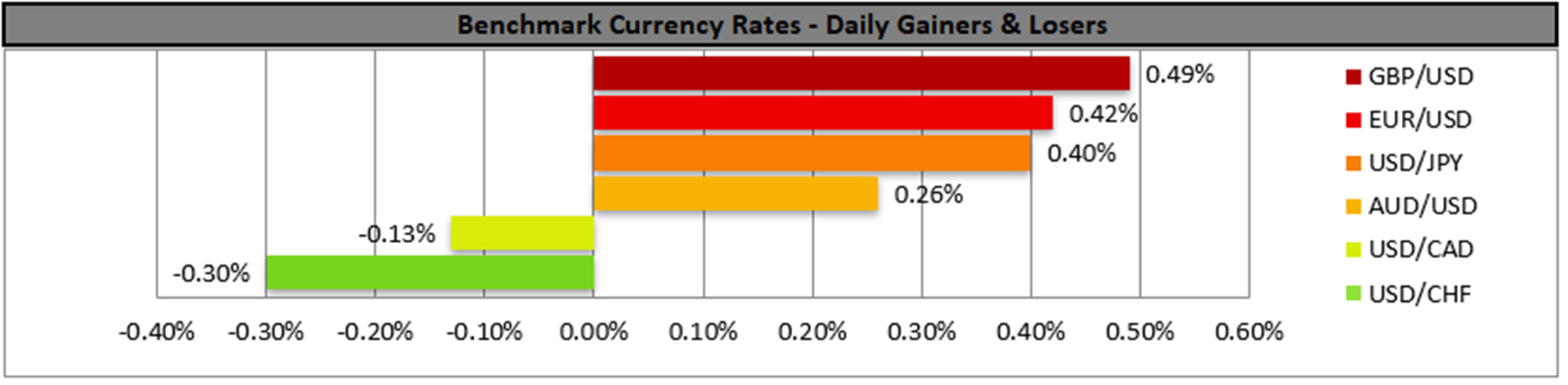 USD/JPY edged higher yesterday yet failed to reach the 146.30 (R1) resistance line and corrected lower. We tend to reject the idea of a double top formation being about to form, yet recognise that the pair seems to have a difficulty forming higher highs despite the upward trendline guiding it since the 2nd of January. The RSI remained above the reading of 50 implying a residue of a bullish market sentiment still being present for the pair and as long as the upward trendline remains intact we maintain our bullish outlook. Should the pair find fresh buying orders along its path we may see USD/JPY breaking the 146.30 (R1) resistance line and aim for the 148.25 (R2) resistance level. On the other hand should the bears take over, we may see USD/JPY breaking the prementioned upward trendline, in a first signal that the upward movement has been interrupted, break the 144.45 (S1) support line and aim for the 143.00 (S2) support level.