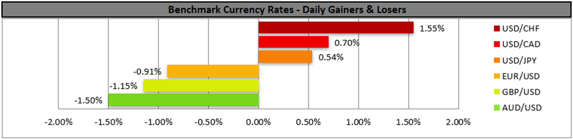 The USD strengthened across the board yesterday reversing any losses made by the Fed’s interest rate decision. The better-than-expected readings of the Philly Fed business index for March and the weekly initial jobless claims figures tended to provide some support for the greenback but also the surprise interest rate cut of the Swiss National Bank may have boldened the USD on a monetary level. US stock markets ended their day in the greens, yet we also highlight that Apple is accused of monopolizing smartphone markets in a US antitrust lawsuit, which may weigh on the share’s price. At the same time, we note that Boeing’s issues seem to grow threatening the company.