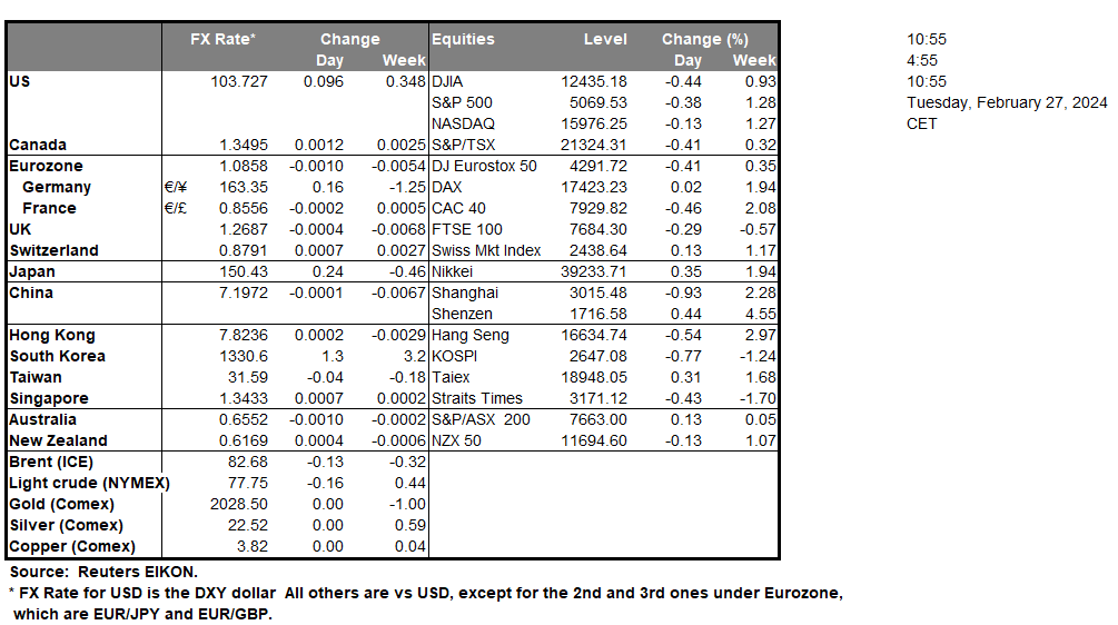 We note in today’s European Session the release of Germany’s Gfk Consumer sentiment figure for March. In today’s American session, we note the US Durable Goods orders rate for January, the US monthly home price rate for December and the US Consumer confidence figure for February. In tomorrow’s Asian session, we note Australia’s CPI rates for January. On a monetary level, we note the speeches by Riksbank Governor Thedeen, BoE Deputy Governor Ramsden and Fed Vice Chair Bar, which are all due to occur today. Lastly, for tomorrow’s Asian session we note New Zealand’s interest rate decision.