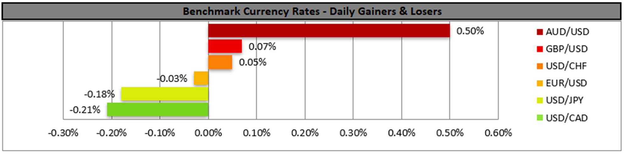The USD tended to gain against its counterparts yesterday as the US CPI rates for August came in hotter than expected and may sharpen the Fed’s hawkishness. Attention today turns towards the US PPI rates and retail sales for August and a possible acceleration could provide some support for the USD. The Aussie got some support today from the better-than-expected Australian employment data for August. The attention of Aussie traders now turns towards China’s urban investment, industrial output and retail sales growth rates for August and a possible acceleration could provide some support for the AUD as well as it would imply more exports of raw materials to China.