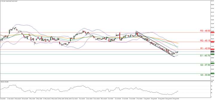 For our bearish outlook to continue, we would like to see a clear break below the 40.70 (S1) support level, with the next possible target for the bears being the 37.50 (S2) support base. On the other hand, for a bullish outlook, we would like to see a clear break above the 42.50 (R1) resistance level, with the next possible target for the bulls being the 45.15 (R2) resistance ceiling.