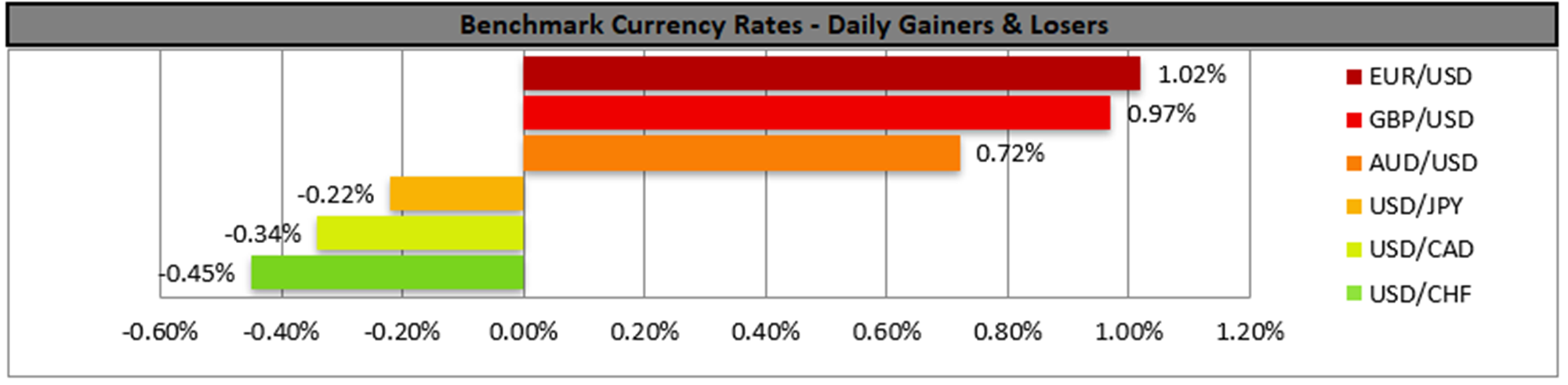 On the commodities front, WTI prices dropped yesterday signaling an interruption of the upward movement. The easing of market worries for the Israeli conflict and the mergers and deals of oil companies tended to push oil prices lower. We note the release of the US API weekly oil inventories figure today and another considerable drawdown could support oil prices. Overall though, on a fundamental level, we may see oil prices getting renewed some support, so some caution is advisable at this point for oil prices.