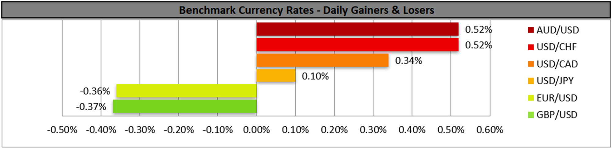 Despite the rise of the USD on a technical level, we note that gold’s price also rose yesterday, yet any gains made were relented in today’s Asian session. The RSI indicator remains between the reading of 50 and 70, implying a bullish predisposition of the market for the precious metal’s price. We also note how the 20 moving average, which is also the median of the Bollinger bands acted as a support line for the bullion’s price. Yet for the adoption of a clearcut bullish outlook we would require gold’s price to break the 4550 (R1) resistance line, reaching new record high levels, and we set as the next possible target for gold’s bulls the 4800 (R2) resistance level. For a bearish outlook to emerge for gold’s price we would require gold’s price to break the 4380 (S1) support line and start aiming if not reaching the 4245 (S2) support barrier.