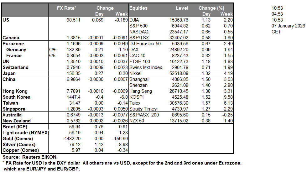 The USD rose against its counterparts yesterday as financial releases could alter the market’s expectations for the Fed’s intentions. Today, we note the release of the ADP national employment figure for December, as market focus may be more on the US employment market, given the release of the US employment report for December on Friday. Yet regarding the level of economic activity in the US economy, we highlight the release of US factory orders for October and the ISM Manufacturing PMI figure for December. On a deeper fundamental level, we note that the markets have, to a large extent, priced in the recent developments on a geopolitical level, including the US intervention in Venezuela and the capturing of Venezuelan President Maduro. Across the world, we note the banning by China of exports of dual-use items to Japan that can be used for military purposes, which may have been a response to the Japanese Prime Minister Takaichi’s remarks about Taiwan. The tensions seem to be escalating further, which could create safe-haven demand.